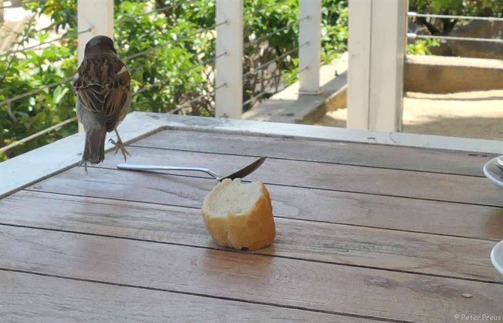 Es ist ein Trost, dass die Spatzen ihr Futter auch außerhalb des Speisesaals suchen: